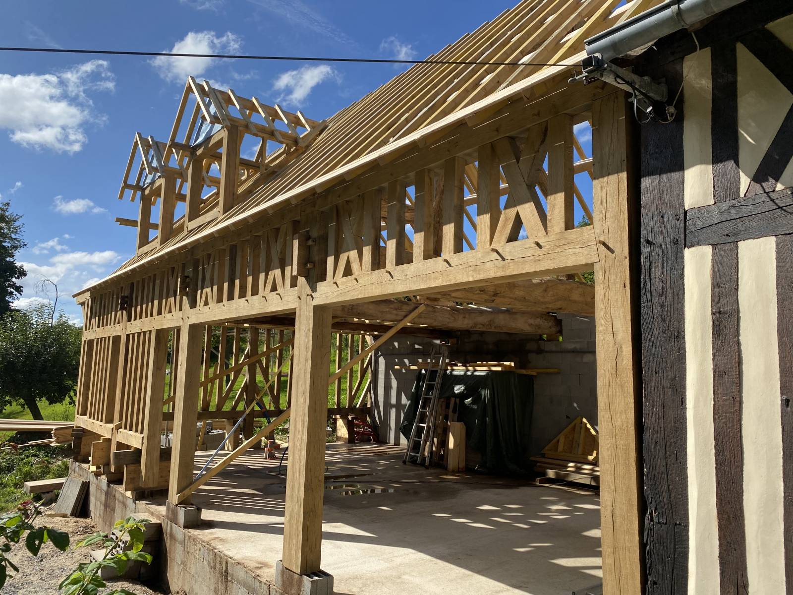 La taille des pans de bois traditionnels a été réalisée par nos soin dans nos ateliers à Ourville-en-caux.