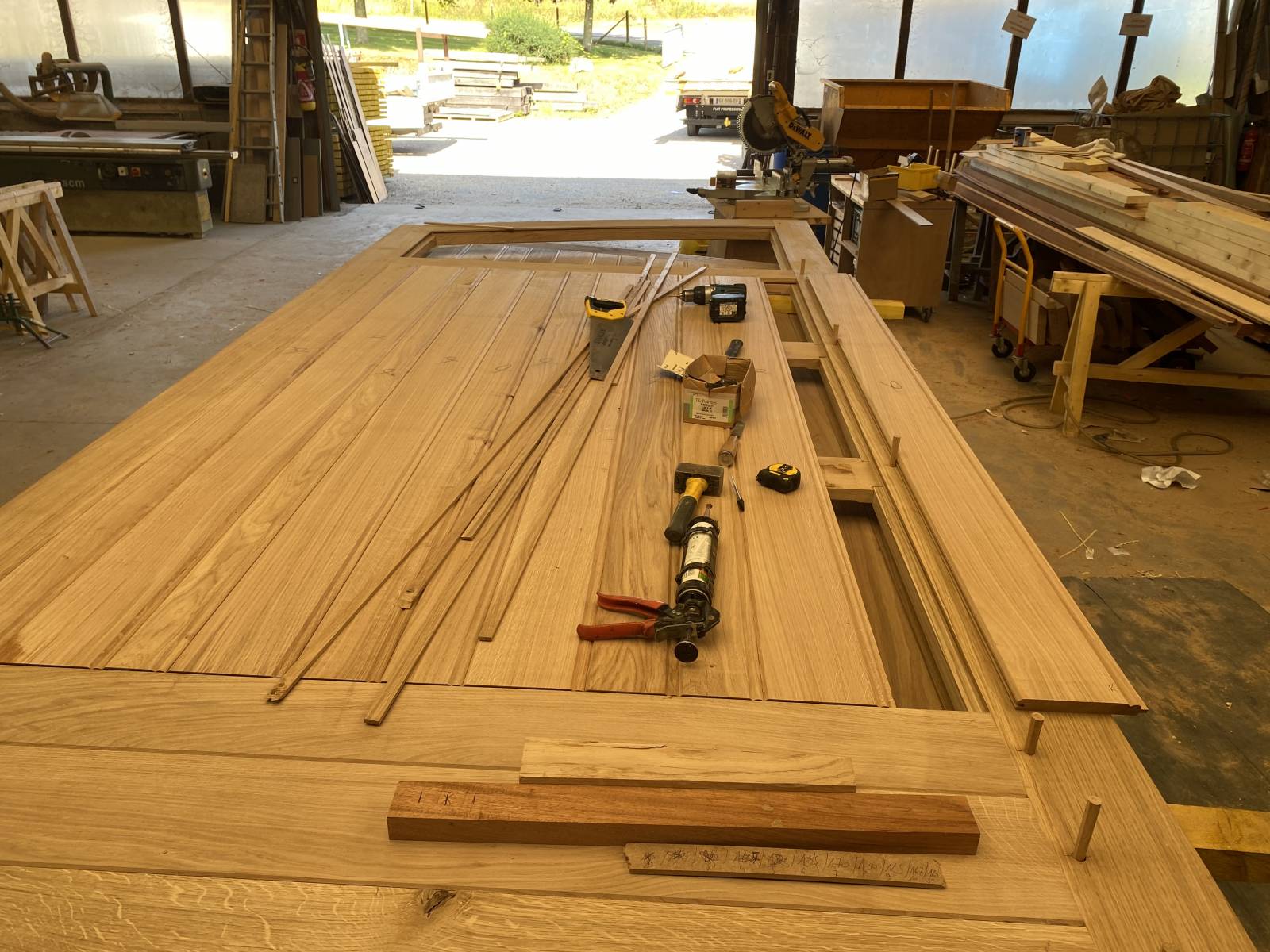 Fabrication d'une porte en chêne, Saint-Valery-en-Caux