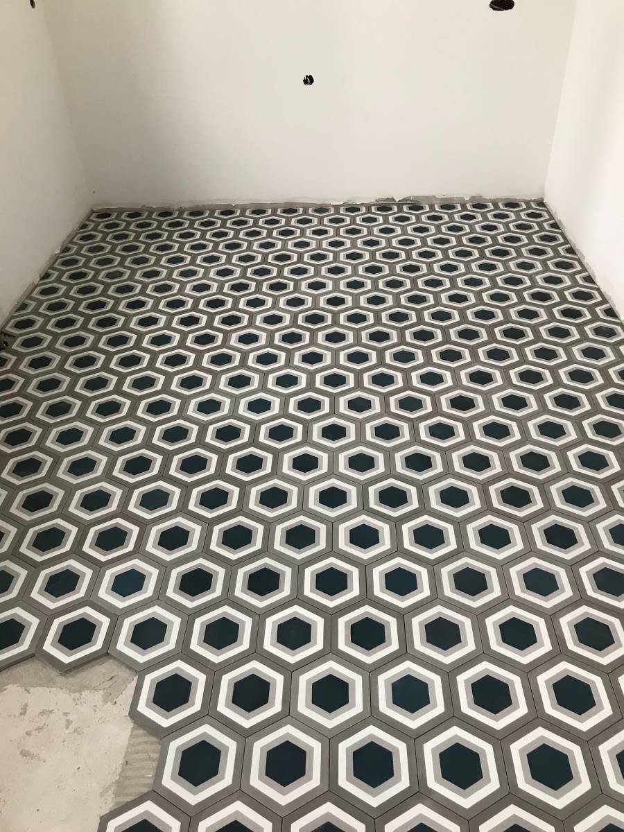 Pose d'un carreau ciment dans une cuisine - Ourville-en-Caux