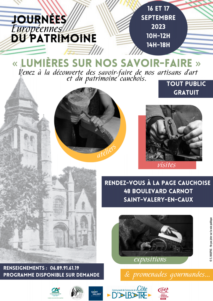Venez nous retrouver aux journées du Patrimoine à Saint Valery-en-Caux les 16 et 17 Septembre à la Page Cauchoise, 48 Boulevard Carnot